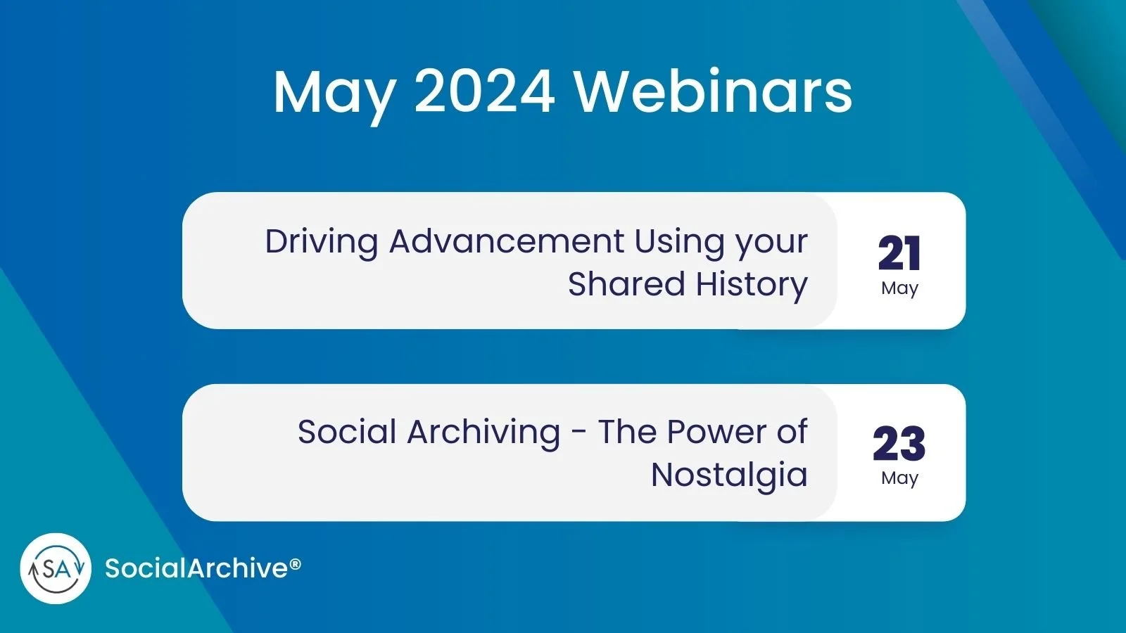 Welcome to our May webinars! This month, join us as we delve into the untapped potential of your institution's history and discover how to harness the power of shared memories to drive advancement.